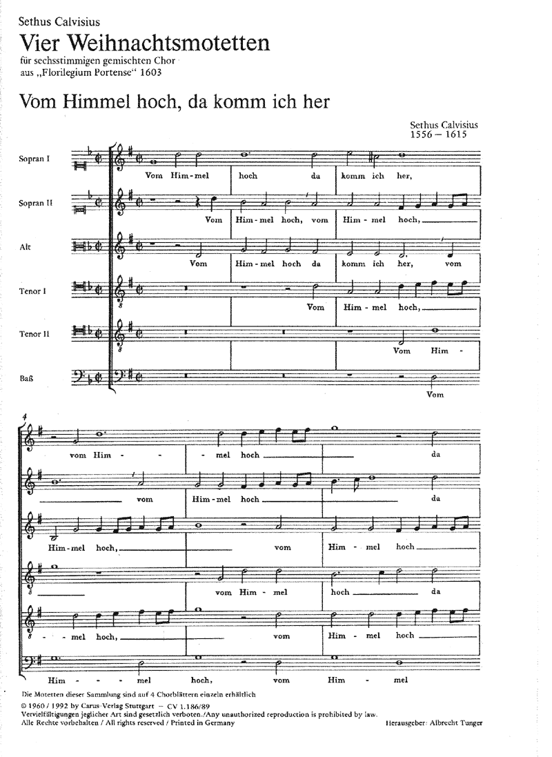 Vom Himmel hoch, da komm ich her - Esempio di spartiti