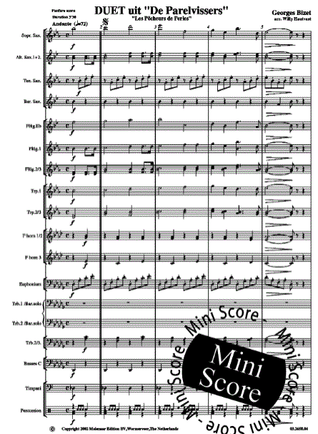Duet uit de 'Parelvissers' (Duet aus 'Die Perlenfischer') - clicca qui Duet uit de 'Parelvissers' (Duet aus 'Die Perlenfischer') (Fanfarenorchester), partitura