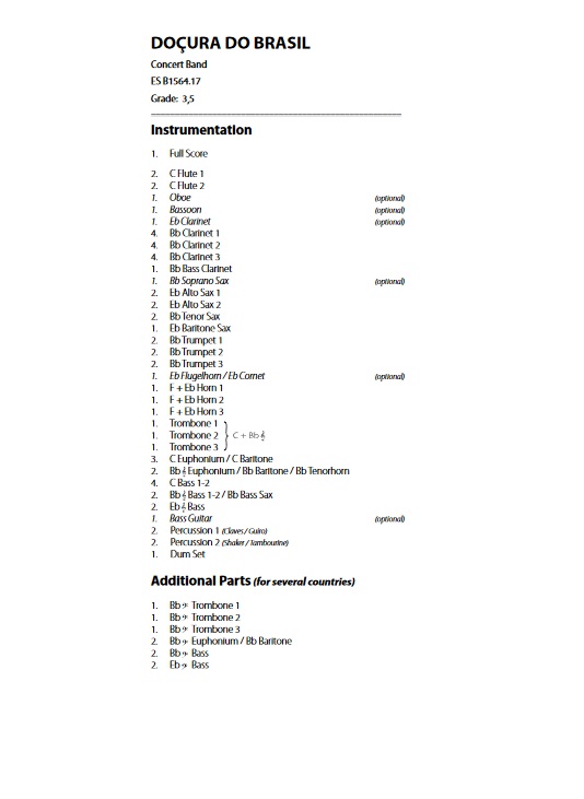 Instrumentation/info extra full score