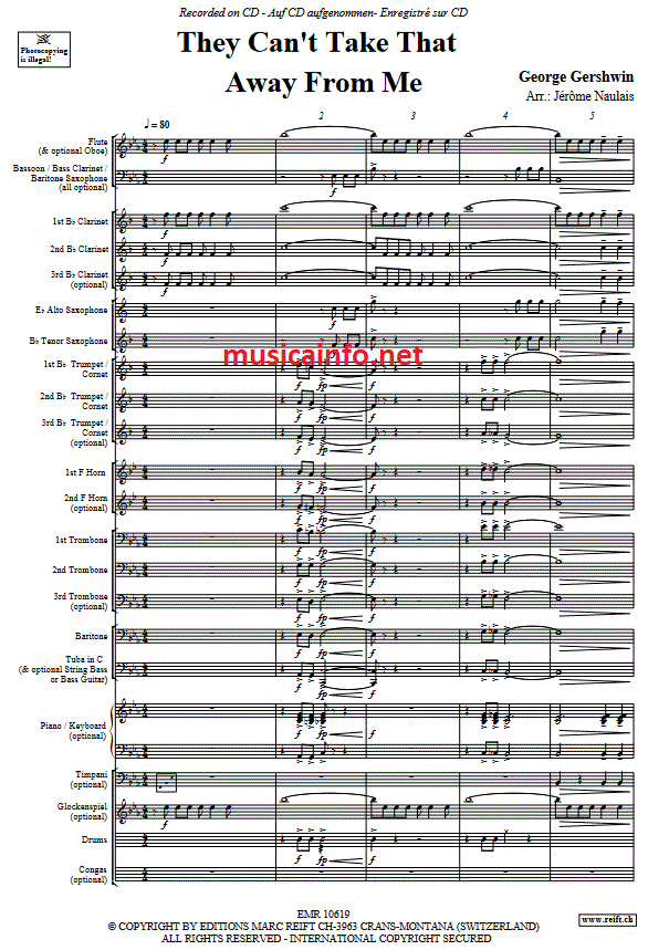They Can't Take That Away From Me - clicca qui They Can't Take That Away From Me (orchestra di strumenti a faito; o; Fanfarenorchester), partitura e parti
