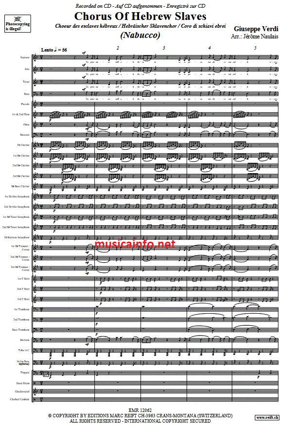 Chorus Of Hebrew Slaves (Nabucco) - Esempio di spartiti