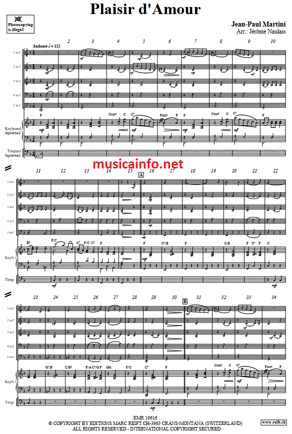 Plaisir d'Amour - Esempio di spartiti