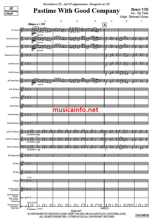 Pastime With Good Company - clicca qui Pastime With Good Company (Brassband), partitura e parti