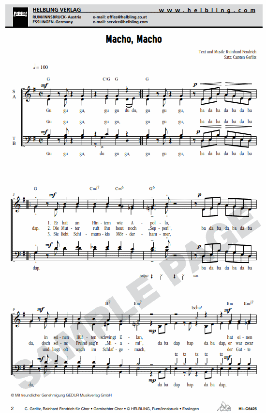 Rainhard Fendrich für Chor - Esempio di spartiti