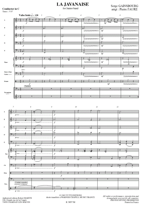 La Javanaise - clicca qui La Javanaise (orchestra di strumenti a faito; Schul- und Jugendorchester), partitura