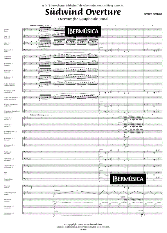 Ulteriori informazioni / contenuti La "Blasorchester Südwind" è una banda sinfonica situata nel sud della Germania che ha invitato Ferrer Ferran come direttore ospite nel 2004. Ha composto questa ouverture come risultato di una commissione "ironica" del direttore della banda che ha cantato cinque suoni A bemolle (3) - B (2)- D diesis (4) - E (4) - F (3) che dovrebbero essere il motivo di base della composizione. Ferran accettò la commissione e compose un'ouverture che sviluppa questi suoni. È un pezzo attraente, pieno di effetti e di immaginazione.