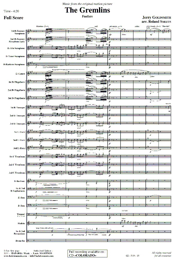 Gremlins, The - clicca qui Gremlins, The (Fanfarenorchester), partitura
