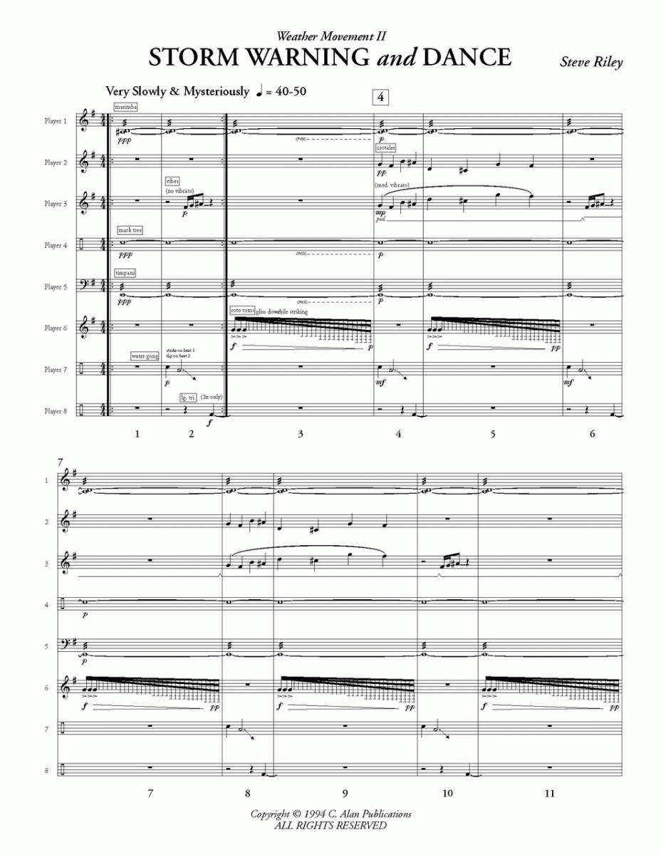 Als zweiter Satz von "Weather Movements" beginnt dieses Stück frei und mysteriös, bevor es in einen "vivace" -Teil mit furianten Percussion-Grooves und eingängigen Melodien übergeht.