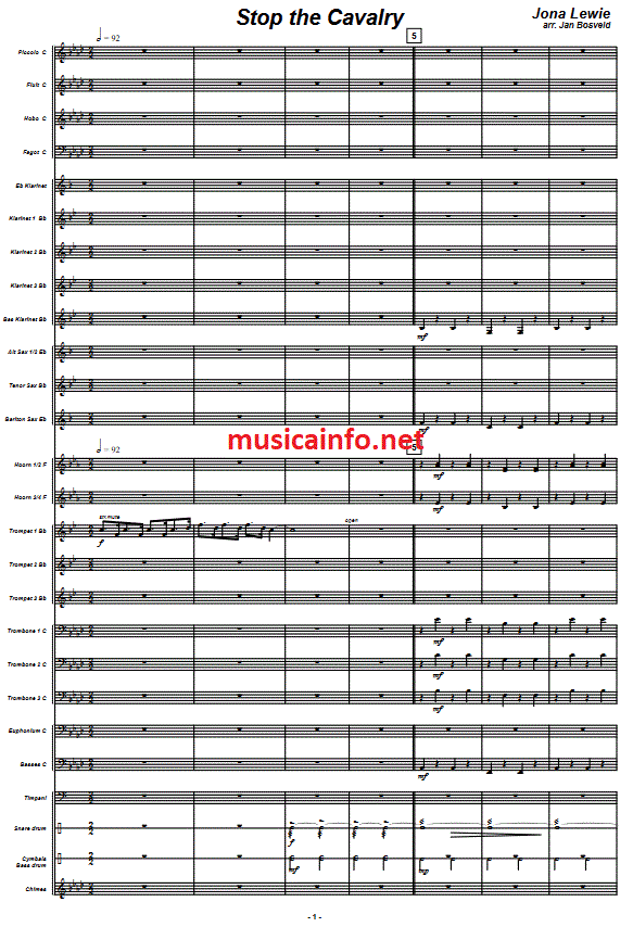 Stop the Cavalry - Esempio di spartiti