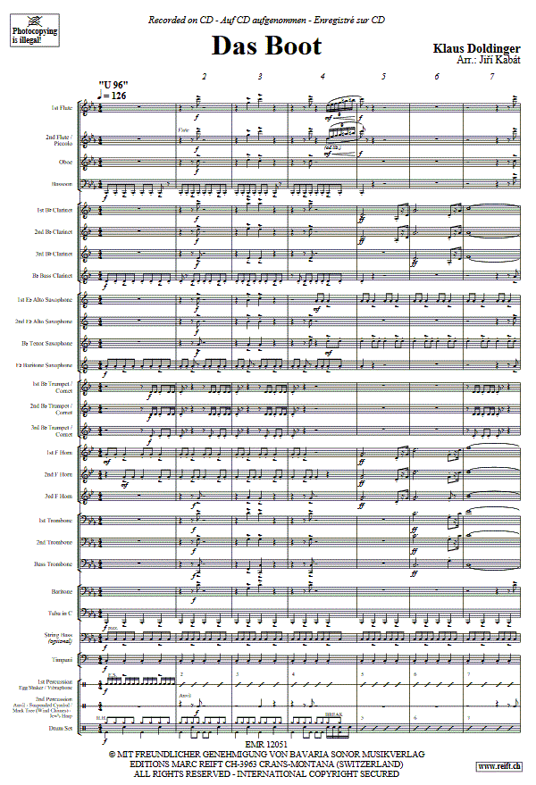 Boot, Das - clicca qui Boot, Das (orchestra di strumenti a faito; o; Fanfarenorchester), partitura e parti