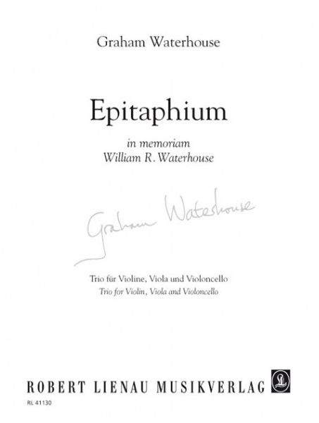 Ulteriori informazioni / contenuti Epitaphium“ wurde ursprünglich für die Trauerfeier des 2007 verstorbenen britischen Fagottisten und Musikwissenschaflters William Waterhouse geschrieben. Der Komponist Graham Waterhouse wollte seinem Vater eine Art „musikalisches Denkmal“ im Kleinen setzen, etwas Persönliches, Rituelles, „zeitlos“ wie ein Grabstein. Das kurze eindrucksvolle Stück ist von hoher Klangintensität und Dichte. Reine Intervalle (Quarte, Quinte, Oktave) prägen die harmonische Sprache. Als verstecktes Zitat taucht das Motiv „Requiescant in pace“ aus Brittens „War Requiem“ auf.