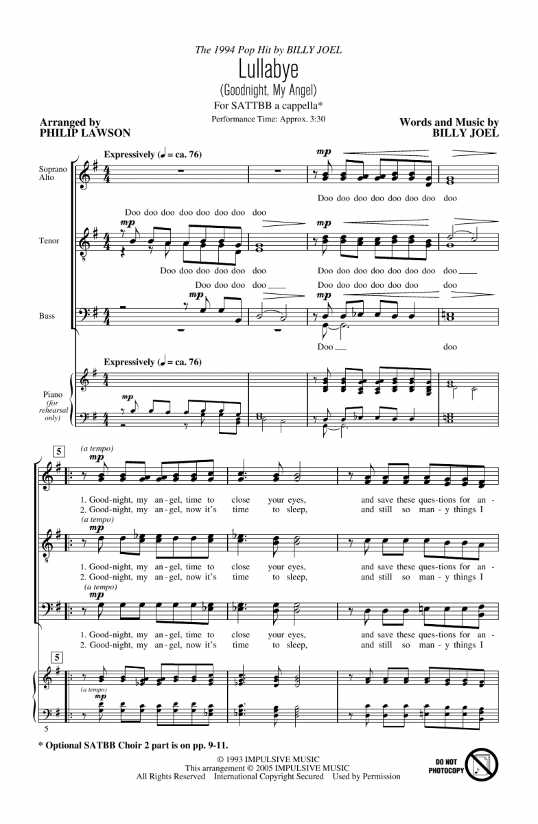 Ulteriori informazioni / contenuti Now available in a revised edition with optional parts for a second choir, this sweet and simple lullaby by Billy Joel on his River of Dreams album is stunning.