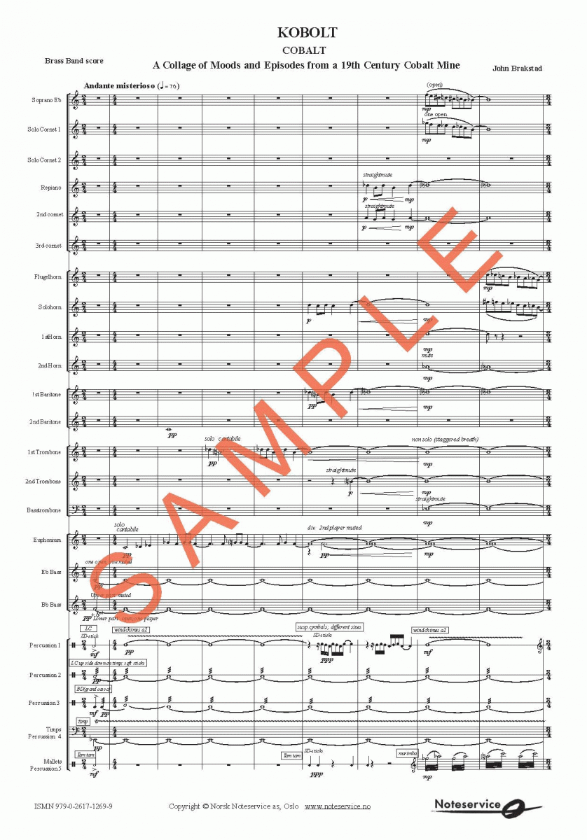Ulteriori informazioni / contenuti Nella presente partitura sono presenti 5 parti per percussioni, ma è disponibile anche una partitura ridotta per percussioni scritta per tre parti. Queste parti possono essere scaricate da www.noteservice.no