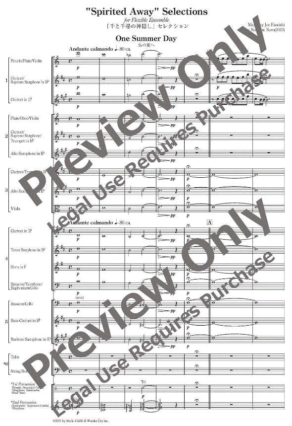 Ulteriori informazioni / contenuti Questa selezione arrangia quattro brani tratti dal capolavoro dello Studio Ghibli Spirited Away, ampiamente elogiato non solo come gioiello dell'animazione giapponese ma anche per la squisita musica composta da Joe Hisaishi. Questi arrangiamenti per un ensemble flessibile catturano l'essenza dei seguenti brani: