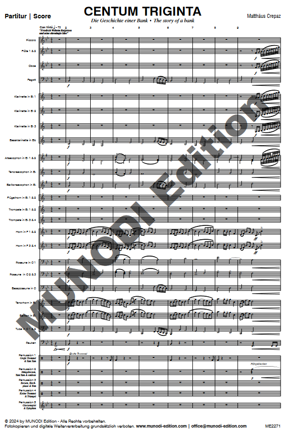 Ulteriori informazioni / contenuti La presente composizione è stata commissionata dalla Cassa Raiffeise di Castelrotto – Ortisei. Il titolo “centum triginta” (centotrenta) si riferisce al 130° anniversario della banca.