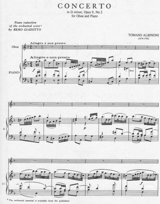 Concerto D-Moll für Oboe und Klavier