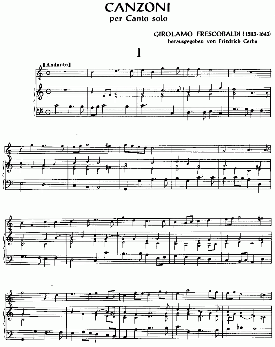 Canzoni per Canto Solo - Esempio di spartiti