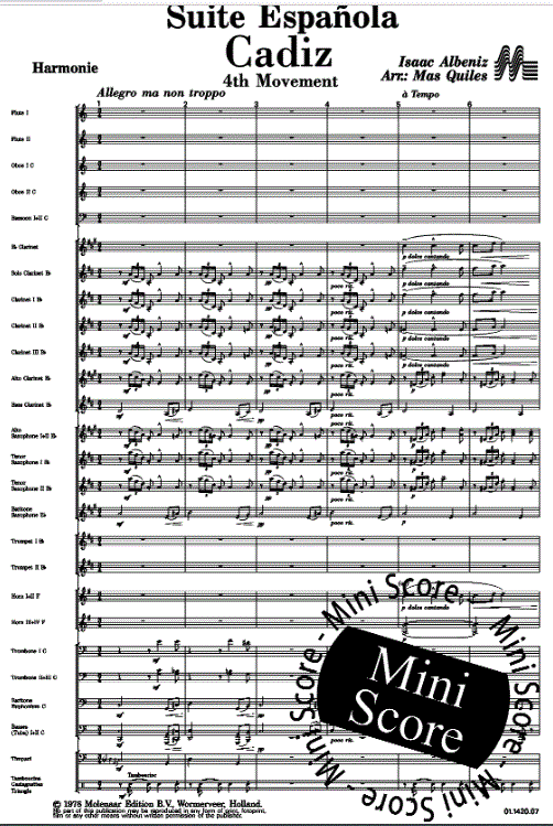 Suite Espanola: Prt.4 'Cadiz' (Espanola) - clicca qui Suite Espanola: Prt.4 'Cadiz' (Espanola) (orchestra di strumenti a faito), partitura e parti