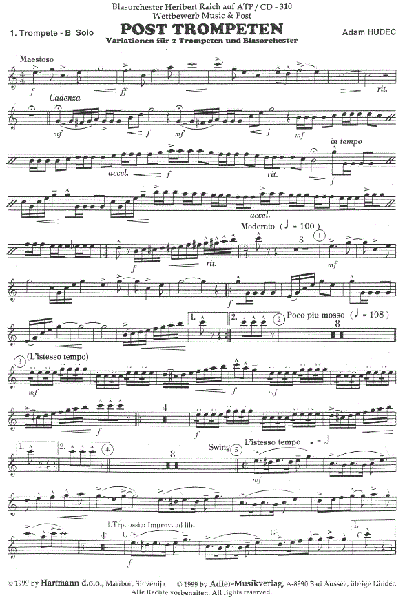 Post-Trompeten - clicca qui Post-Trompeten (orchestra di strumenti a faito; 2 tromba Bb), Particelle e set di parti strumentali