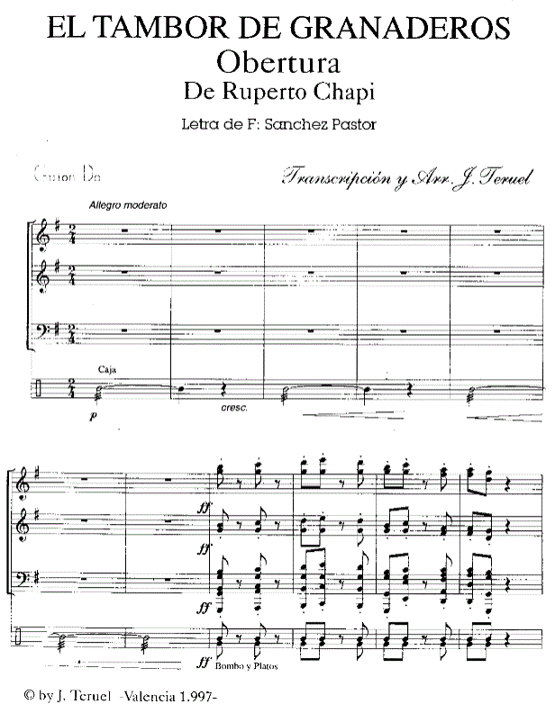El Tambor de Granaderos (Zarzuela) - Esempio di spartiti